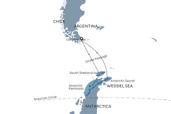 DAY 1 - ARRIVAL IN USHUAIA, EMBARKATION Arrive in Ushuaia, Argentina - the world’s southernmost city. Explore this vibrant Patagonian city, or stretch your legs in the surrounding forests. Alternatively, consider a day trip off the beaten path into the raw nature of Tierra del Fuego. The island of Tierra del Fuego is a hiker's paradise with rugged snow-capped mountains, glaciers, flower-filled meadows and rich boggy wetlands. In the afternoon, we board our vessel, waiting to welcome us in port. After our mandatory safety drill, our expedition begins as we navigate through the calm waters of the famous Beagle Channel (named for Charles Darwin's ship). This steep-sided strait divides southern Tierra del Fuego between Chile and Argentina, and has been the jumping-off point for thousands of expeditions into the unknown. Watch out for whales and dolphins as we sail off the edge of the map into the tempestuous Drake Passage. DAY 2-3 - AT SEA - CROSSING THE DRAKE PASSAGE SOUTHBOUND As we sail through the renowned Drake Passage, linking Patagonia to the Antarctic Peninsula, brace yourself for its notoriously turbulent waters and fierce westerly winds, aptly called the Roaring Fifties. Thankfully, our purpose-built expedition vessels ensure a comfortable journey, with their uniquely stable X-Bow and powerful engines, guided by an expert crew. Embrace this exciting crossing, considered a badge of honour by seasoned sailors, as you traverse it twice during our expedition. In the Drake Passage, our focus turns to preparing for our arrival in Antarctica. Your Expedition Leader will provide thorough safety briefings and guidelines to minimise our impact on this pristine environment. Our dedicated Expedition Team will assist in biosecuring your gear while offering tailored lectures on Antarctic exploration, wildlife, and more. On the third day, we'll cross the Antarctic Convergence, marked by a sudden drop in temperature as warmer currents give way to Antarctic waters. This transition fosters a surge in marine life, promising sightings of petrels, albatrosses, and possibly even penguins, seals, and whales. Weather permitting, we aim to land on the South Shetland Islands on the afternoon of the third day of our expedition, starting our exploration of the Last Continent. DAY 4-6 - THE ANTARCTIC SOUND AND WEDDELL SEA In the forthcoming days, our expedition ventures into the captivating region at the northeastern tip of the continent, the Antarctic Sound, gateway to the Weddell Sea. This region is confusingly named after the Swedish vessel Antarctic which first sailed the area in 1902. Despite its northern location, the Antarctic Sound experiences harsh cold conditions due to winds and currents from the Weddell Sea. This area boasts some of Antarctica's most striking scenery, from the vast Adelie Penguin colonies at Hope Bay and Devil's Island, to the dramatic volcanic cliffss at Brown Bluff. Continuing southward into the Weddell Sea, named after early British Antarctic explorer James Weddell, we encounter immense tabular icebergs and the expansive icepack which nurtures Antarctic krill, the foundation of the food chain. The presence of krill attracts a diverse array of wildlife, including penguins, seals, seabirds, and humpback whales, all of which we hope to see while exploring this icy wilderness. Navigation through the Weddell Sea presents challenges due to substantial sea ice and massive icebergs. Our experienced Captain and Expedition Leader adapt plans to ensure safe exploration, seizing opportunities to delve into this remote and rarely visited wilderness. We will aim to come ashore at sites which showcase the majesty of the Antarctic environment and ecosystem, as well as exploring on Zodiac cruises. Embrace the wonder of this journey into the unknown, exploring a region few have had the privilege to witness. DAY 7-8 - THE ANTARCTIC PENINSULA In the days ahead, we venture further west along the Antarctic Peninsula into the Gerlache Strait region. This icy expanse requires meticulous planning by our Expedition Leader and Captain, who will plot a route to explore a variety of sites highlighting the area's staggering natural beauty. The Gerlache Strait, consisting of the 'spine' of the Antarctic Peninsula and a large number of mountainous glaciated islands, offers a plethora of iconic Antarctic experiences. From Zodiac cruises in Paradise Bay, to witnessing penguins nesting on Cuverville Island, each potential stop promises awe-inspiring encounters. Explore historic huts at Damoy Point, witness humpback whales in Wilhelmina Bay, and marvel at the jaw-dropping scenery of the Lemaire Channel. Wherever we go on the Antarctic Peninsula, endemic wildlife, tantalising history and breathtaking natural beauty abound. While our exact destinations will depend on weather and ice conditions, your Expedition Leader will ensure guests are informed of our plans through nightly briefings. In the ever-changing Antarctic environment, flexibility is key as we adapt plans to suit the conditions while offering enriching onboard experiences such as lectures, recaps, wine-tasting, and spa treatments. DAY 9 - THE SOUTH SHETLAND ISLANDS Our Antarctic odyssey culminates amidst the rugged beauty of the South Shetland Islands. This archipelago represents the northernmost tip of Antarctica, standing proud against the relentless force of the Southern Ocean. Despite the furious elements, the islands boast a remarkable richness of wildlife, with numerous colonies of Gentoo and Chinstrap Penguins dotting the island shores, accompanied by an array of formidable seabirds like the predatory Giant Petrels. The ice-capped peaks of Livingstone, Greenwich, and King George Islands offer a stunning backdrop to explore. Experience the eerie landscape of Deception Island, an active volcanic crater with black steaming sands and rusting ruins, or witness the bustling penguin colonies on Aitcho and Half Moon Islands, or immerse yourself in the h