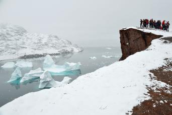 Long hikes are for groups of passengers, accompanied by two armed expedition staff and a Zodiac that will sail ahead to watch for polar bears along the shoreline. Passengers who join this activity should have the willingness and ability to walk at least 15 km (9 miles) in semi-rough terrain that includes shorelines, tundra, low hills, and river crossings. Walks will take around six hours from start to finish, rest times included. We will walk at a modest pace and not cross any alpine terrain. Passengers who do not take part in long walks will have a landing in the morning at the start point of the walk, then sail to the end point of the walk for their second landing in the afternoon.