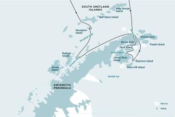 This adventurous expedition explores one of the least-visited areas on Earth, Antarctica’s amazing Weddell Sea. After visiting some of the same sites legendary explorer Ernest Shackleton’s charted in South Georgia, we’ll enjoy the Weddell’s exotic wildlife and colossal tabular icebergs. During these voyages, we transfer our passengers to shore using Zodiacs and operate helicopters in areas where Zodiacs cannot be used. If conditions allow for helicopter transfers, we will attempt landings on both land and sea iceItinerary