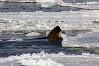 Fin Whale Akin to their blue whale relatives both in size and the low frequency of their song, these "razorbacks" have asymmetrically colored faces thought to help them while hunting |