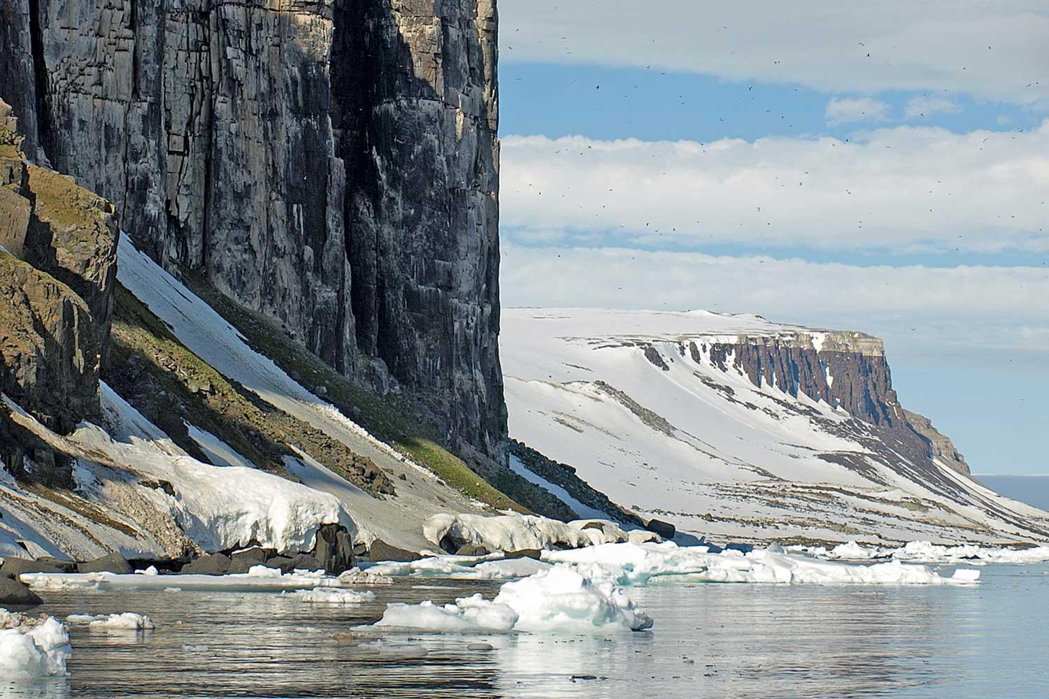 Svalbard’s most famous bird-watching site, Alkefjellet is alive with guillemots, gulls, and kittiwakes