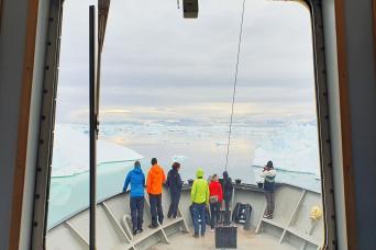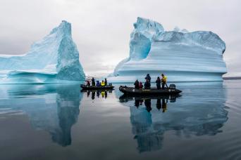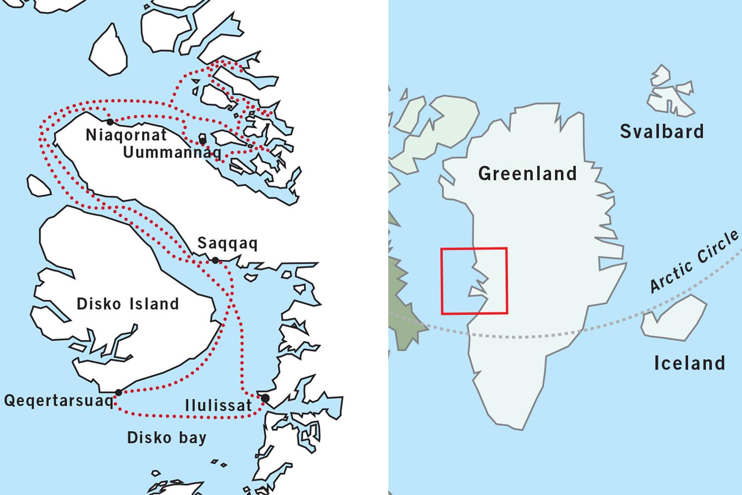 We begin our voyage in the Disko Bay area, known for its diverse and astonishing landscape, including unique geological formations, deep fjords, springs and caves, magnificent towering icebergs and impressive glaciers faces. We continue up the stunning Vaigat strait and onwards to the breathtakingly beautiful fjords and areas north of Uummannaq. The rich waters are likely to introduce us to several whale species, such as humpback, minke or pilot whales, as we navigate in between enormous icebergs under the midnight sun.Itinerary