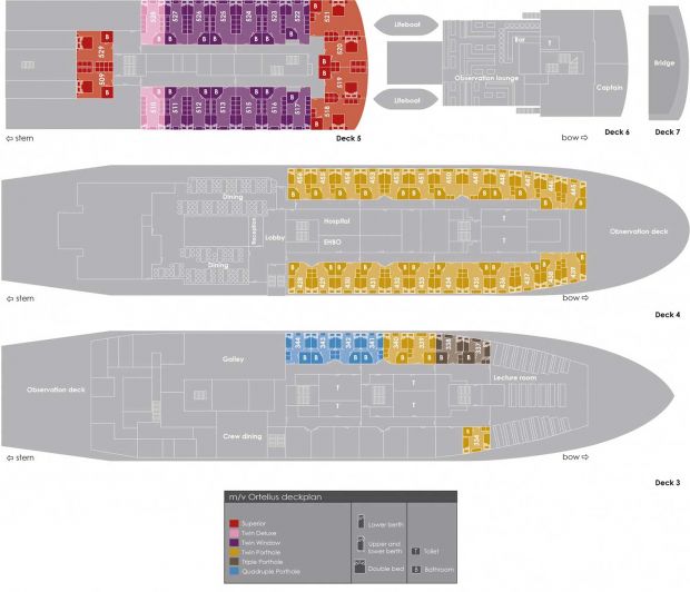 Upon request (some voyages may be excluded), children under 16 with parents may receive 40 % discount in Superior, Triple (sharing with 2 parents / adults) and Quadruple Cabins (sharing with 3 parents / adults).