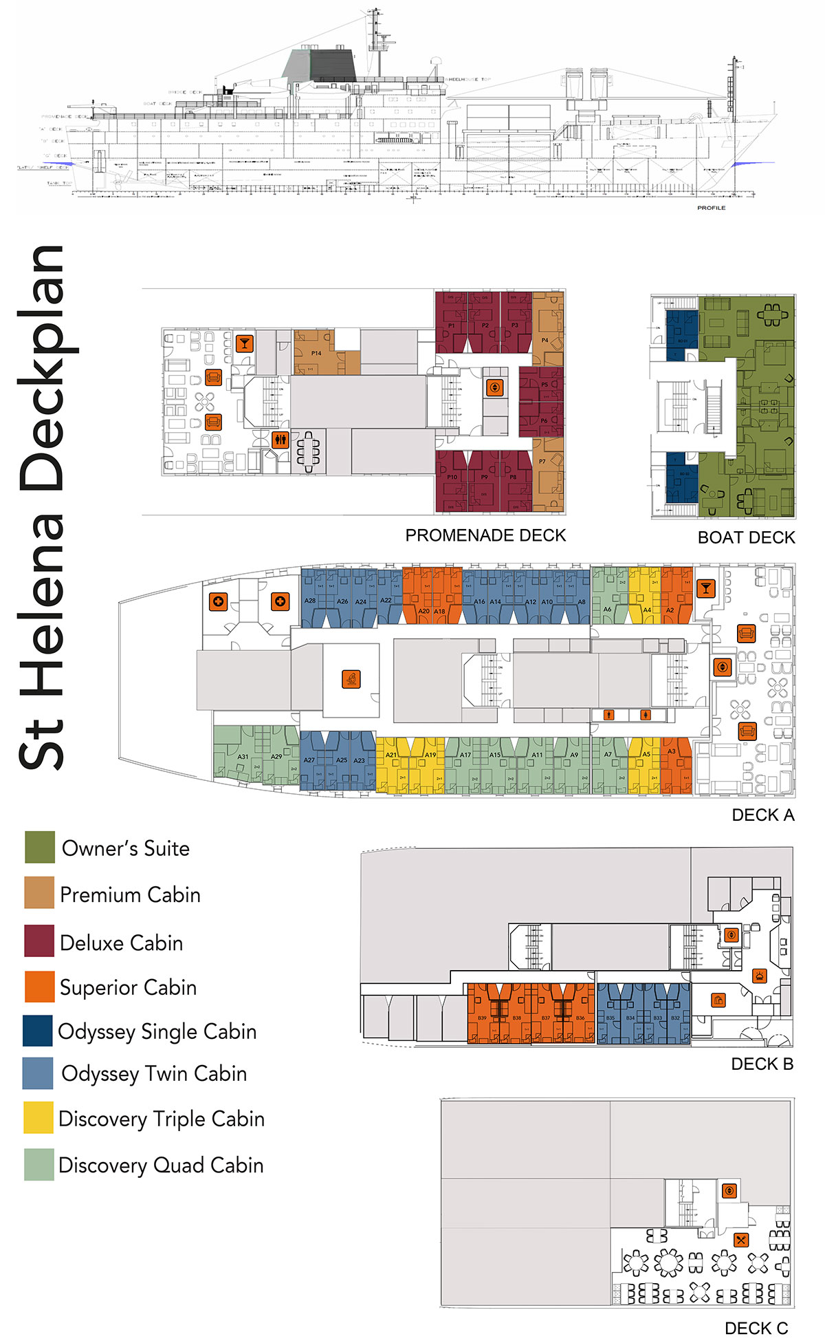 Built in the UK the St Helena is a rugged, versatile expedition platform and truly unique in the Antarctic world. Originally built to serve one of the most remote communities on Earth, the St Helena is a storied vessel with a legacy of resilience, reliability, and global connection. Her recent refit in 2022 has introduced refined touches throughout, from modern cabin furnishings to enhanced public spaces, creating an atmosphere of modern comfort and style. With capacity for 150 but carrying just 98 guests, St Helena blends traditional seafaring heritage with a contemporary expedition experience.