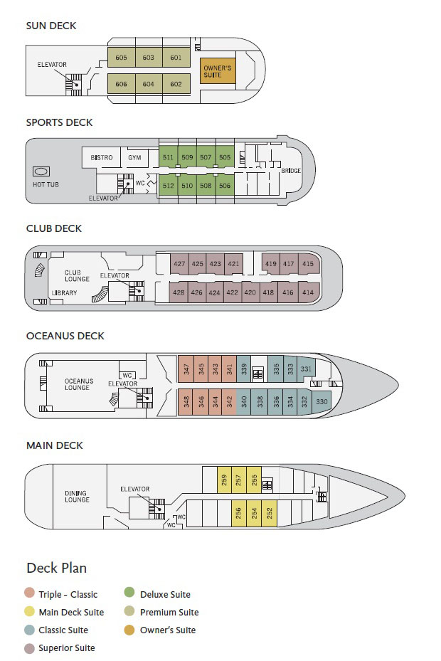 - If you are travelling alone and wish to share this is available only in the following categories: Triple Classic, Main Deck and Classic Suites. If you prefer, single occupancy of a twin cabin is available at 1.7 times the twin rate and available only in Main Deck and Classic Suites; single occupancy of a twin cabin is available at 2 times the twin rate in the Superior, Deluxe, Premium and Owner Suites.